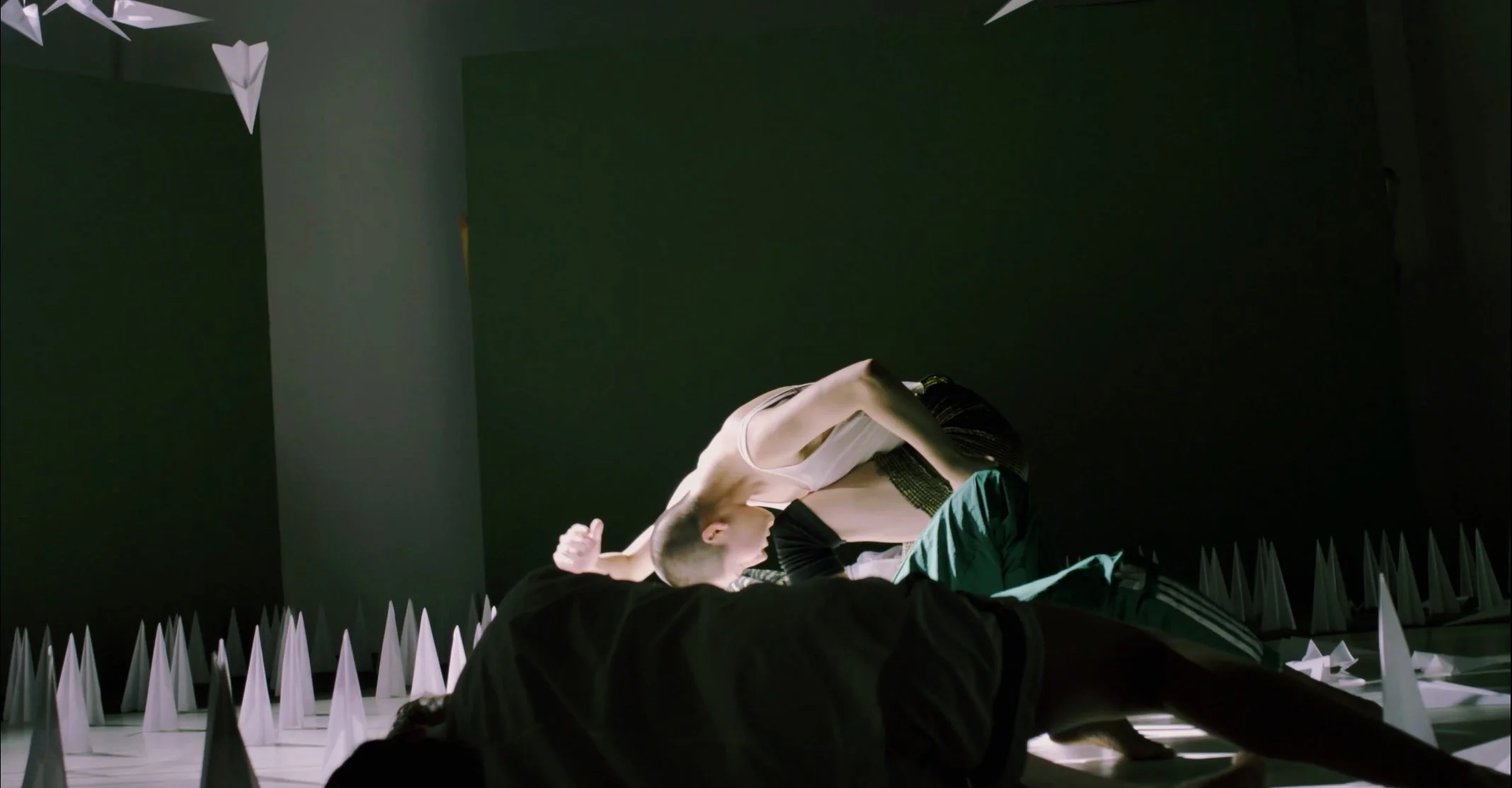 PAPER MOUNTAINS (OF MEMORY) is a film that explores how we hold memory through movement. The work uses choreography created during many months in solitude, and translates that movement onto other bodies, spaces, and paper planes, to describe a fragmented story of loneliness, desire, and rage. PAPER MOUNTAIN (OF MEMORY) is a story about waiting, about how time unfolds unevenly, about our animal selves, our instinct, the distance that unfolds and folds itself between one another, our rage in desire, our bodies as vessels that empty and fill with memory of which it chooses to hold on to or let go endlessly without warning.